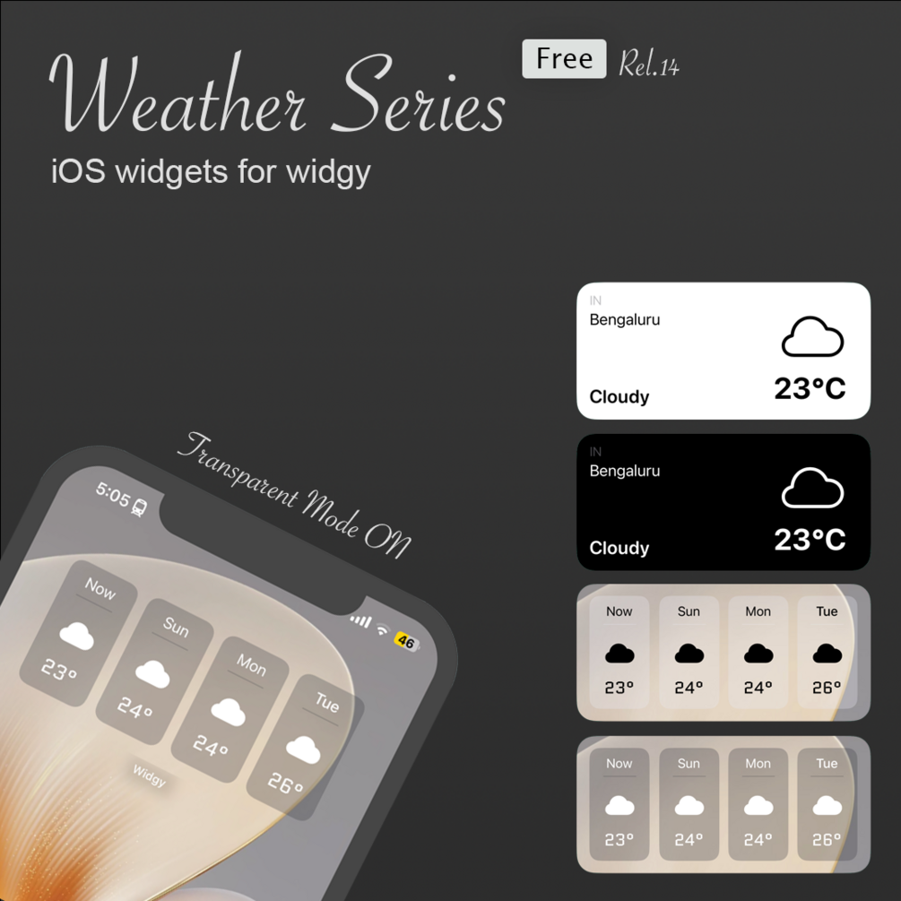Give your Home Screen a different look with these multiple widget styles. This is the first release more releases are further to come.
